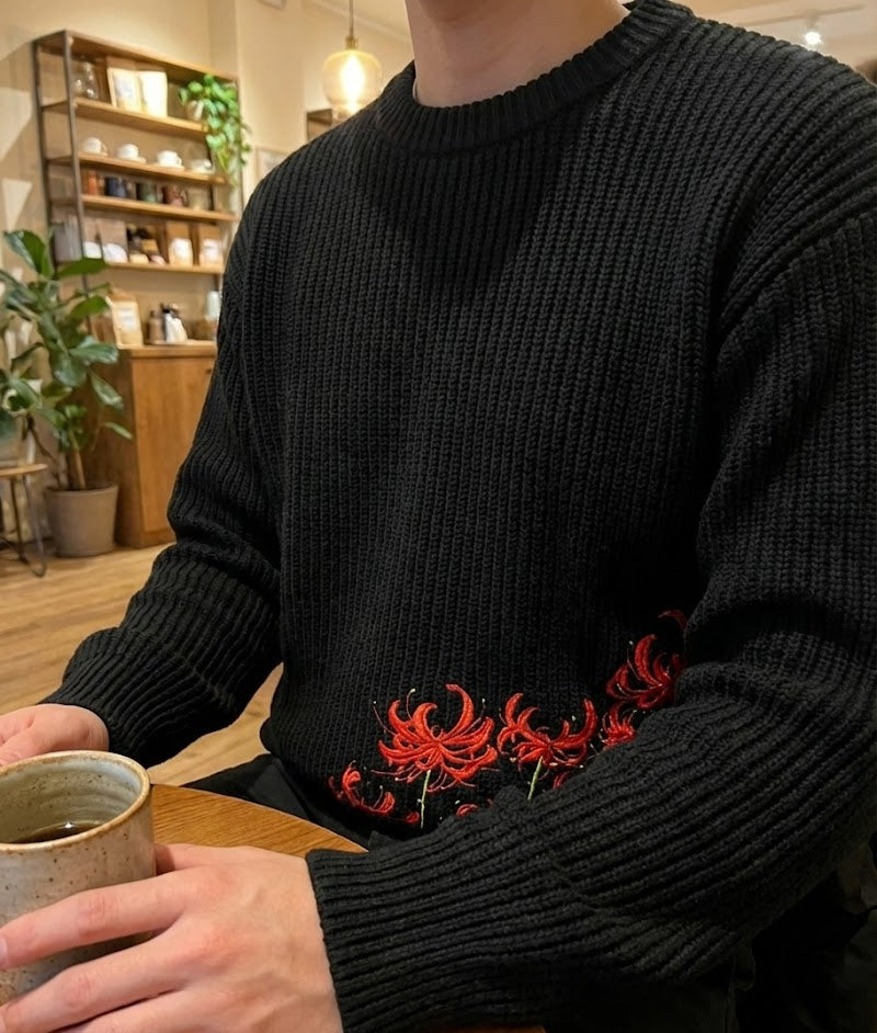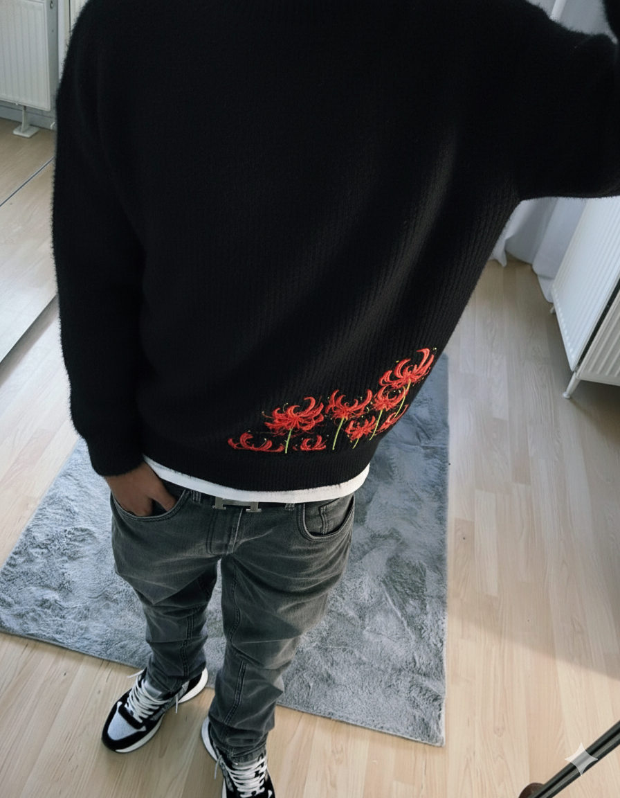 Le Spider Lily Knit est une pièce qui allie confort, style et caractère. Sa maille épaisse et agréable à porter assure chaleur et tenue au quotidien, tandis que les broderies rouges Spider Lily apportent une signature visuelle forte. Il a été pensé pour être facile à styliser et durer dans le temps.